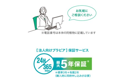 法人向け専用モデルだから、購入後も安心長続き